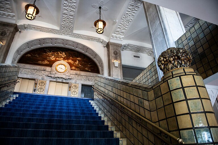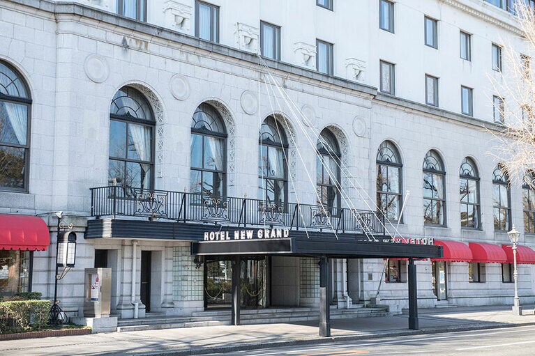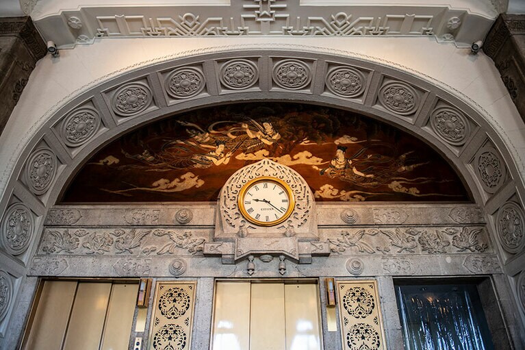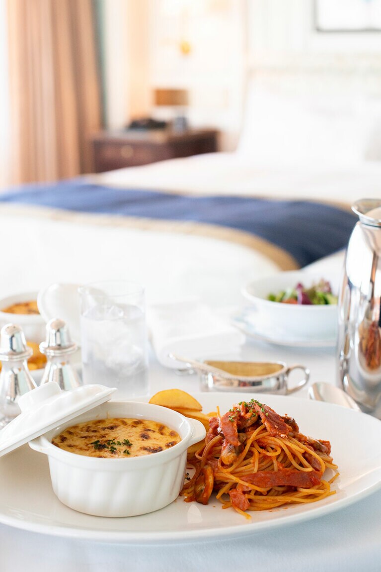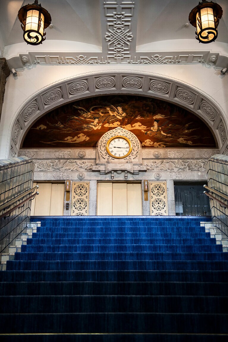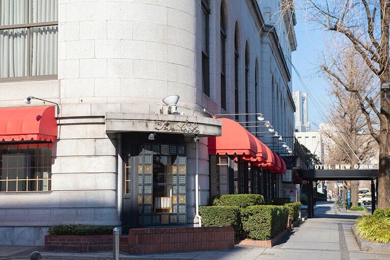 クラシックホテルならではの厳かな佇まい。 初代ニューグランドマイスターのみなさん。 ホテルのシンボルでもある本館の大階段。 大階段のオブジェの意匠は? 大階段の上にも歓迎の意味が。 一気に独特の世界観に引き込まれる。 手前のスペース。 真下から見ると陰陽を思わせる柄が。 奥のスペース。大きな窓からはイチョウ並木越しに横浜港が見える。 ロビーの奥の方に2脚あるキングスチェア。 4カ所、それぞれ少しずつ表情が違う。お気に入りの天使を見つけて。 中庭の噴水。 長年そのままの書体もかわいらしい。 息を飲むような空間です。 カラフルなのに品位がある。 ステージ上部を彩るホテルのシンボル「フェニックス」。 レインボー ボール ルームでは床にもフェニックスが。 「幻」といわれる理由とは? 横浜港も一望。 ここでもぜひ天井を見上げて。 レトロなプレートに惹かれる。 ホテルを代表する「マッカーサーズスイート」。 当時のままのデスク。 憧れの天蓋付き。ハネムーナーにも人気。 タワー館セミスイートハリウッドツイン。 タワー館セミスイートハリウッドツインからの眺望の一例。山下公園、氷川丸、ベイブリッジも。 今や定番メニューのナポリタンとドリアはホテルニューグランド発祥。 クロッシュを使ったサービスも今では貴重。 「オードヴルの盛り合わせ」。左から、パテ・ド・カンパーニュ、ポワソン・テリーヌ、天使のエビ カクテルキャビア、パパイヤの生ハムのせ。 「コンソメスープ」。 「ホテルニューグランドの名物料理“ソール・ナンチュア”」。