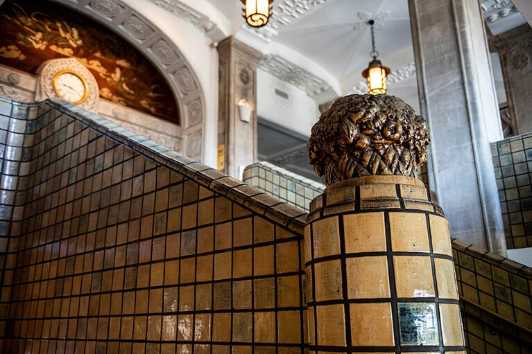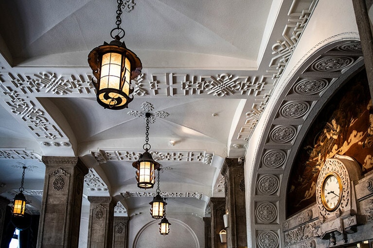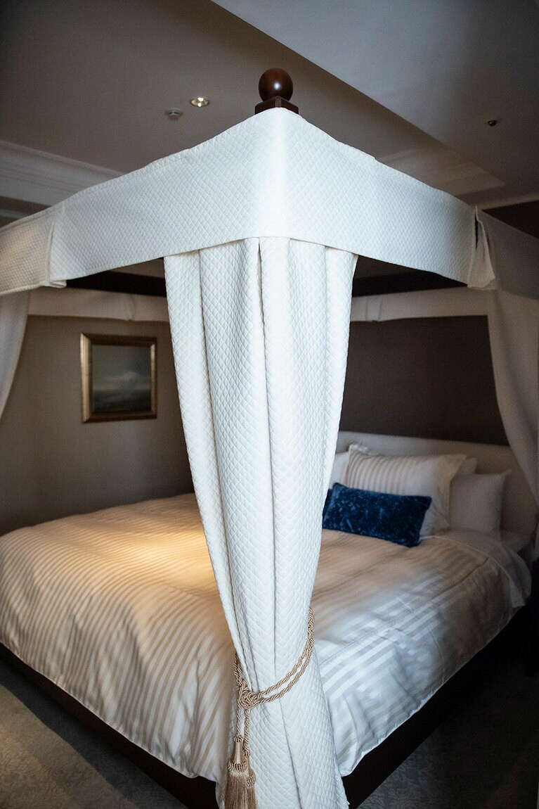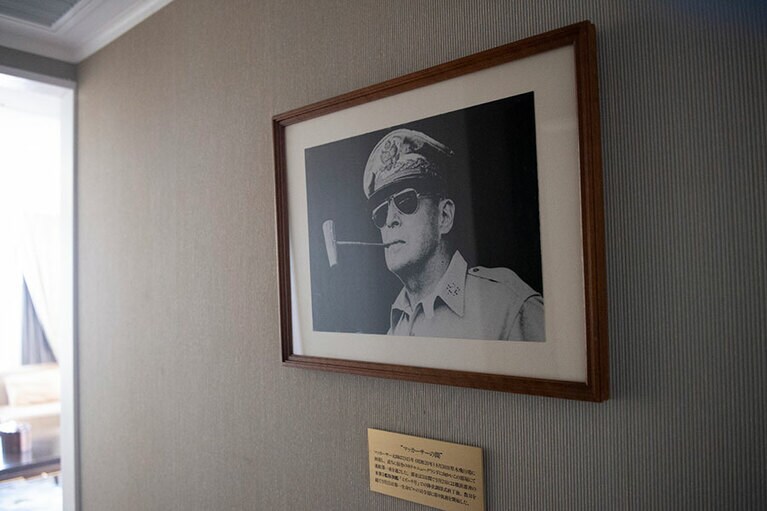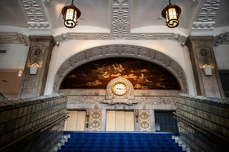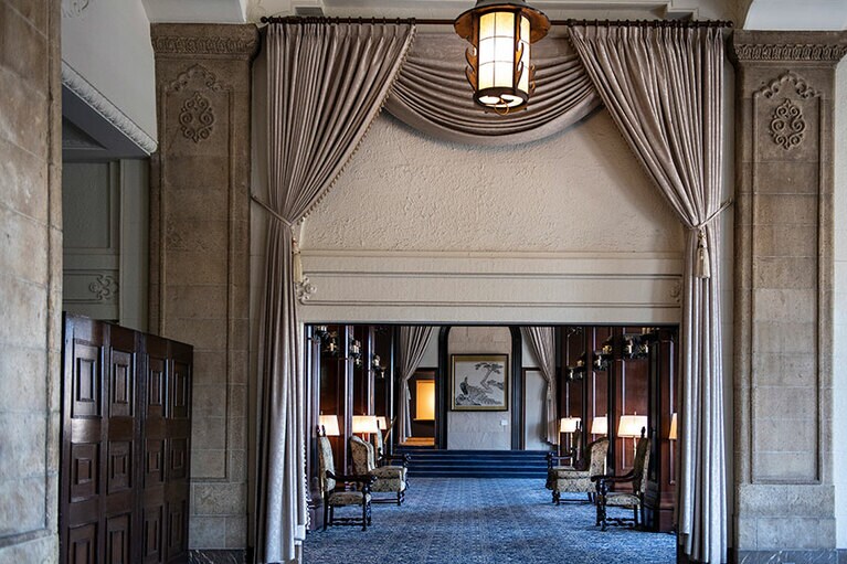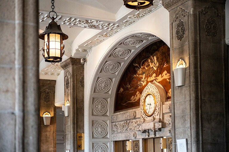 クラシックホテルならではの厳かな佇まい。 初代ニューグランドマイスターのみなさん。 ホテルのシンボルでもある本館の大階段。 大階段のオブジェの意匠は? 大階段の上にも歓迎の意味が。 一気に独特の世界観に引き込まれる。 手前のスペース。 真下から見ると陰陽を思わせる柄が。 奥のスペース。大きな窓からはイチョウ並木越しに横浜港が見える。 ロビーの奥の方に2脚あるキングスチェア。 4カ所、それぞれ少しずつ表情が違う。お気に入りの天使を見つけて。 中庭の噴水。 長年そのままの書体もかわいらしい。 息を飲むような空間です。 カラフルなのに品位がある。 ステージ上部を彩るホテルのシンボル「フェニックス」。 レインボー ボール ルームでは床にもフェニックスが。 「幻」といわれる理由とは? 横浜港も一望。 ここでもぜひ天井を見上げて。 レトロなプレートに惹かれる。 ホテルを代表する「マッカーサーズスイート」。 当時のままのデスク。 憧れの天蓋付き。ハネムーナーにも人気。 タワー館セミスイートハリウッドツイン。 タワー館セミスイートハリウッドツインからの眺望の一例。山下公園、氷川丸、ベイブリッジも。 今や定番メニューのナポリタンとドリアはホテルニューグランド発祥。 クロッシュを使ったサービスも今では貴重。 「オードヴルの盛り合わせ」。左から、パテ・ド・カンパーニュ、ポワソン・テリーヌ、天使のエビ カクテルキャビア、パパイヤの生ハムのせ。 「コンソメスープ」。 「ホテルニューグランドの名物料理“ソール・ナンチュア”」。