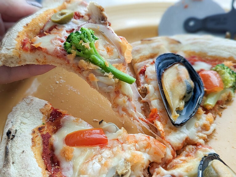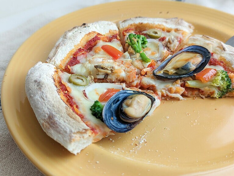 春を頬張る、島根「ラ・カーメラ」の 魚介のピザセット