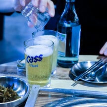湯呑み各W150,000、茶葉入れW130,000。Instagram @lee_taxoo 粉引茶碗各W65,000、粉引カップW60,000。Instagram @doyedang マグカップ W47,000、取手付き片口 W135,000、ミニボウル W32,000。Instagram @ecriture_studio_ 脚付きグラス各W150,000。Instagram @donghee.glass