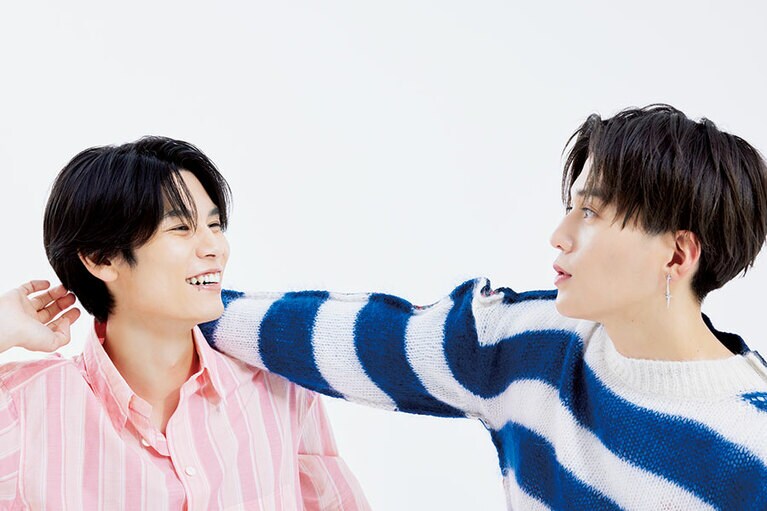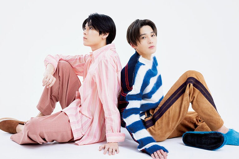 シャツ 36,300円/エルイージェイ、パンツ 42,900円/セラー ドアー、シューズ 25,300円/アーロン(すべてユナイテッドアローズ 六本木ヒルズ店) ニット 151,800円、パンツ 400,400円、シューズ 118,000円/すべてマルニ(マルニ ジャパン クライアントサービス)