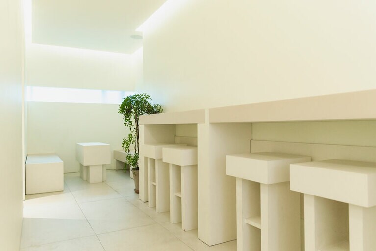 「フォレスト チーズケーキ」W7,500は抹茶の香りが広がる味わい。 ピーナツバター、キャラメル、バナナを使ったチョコタルト「フラワリー ランド」W7,500。 砂糖細工でコーティングされた「オアシス」W7,500。ブルーのムースは青い菊の花で着色。 店はモダンな梨泰院エリアに。 柑橘類の風味がアクセントになった「スイート パンプキン サラダ」。 ランチコースW25,000(注文は2名〜)より。カリッと揚げた豆腐を甘辛ソースで和えた「フライド トーフ」。 ご飯を海苔で巻いた「エクロニア ロール」。 肉厚のホタテが入った「ハンド プルド ドウ スープ」。