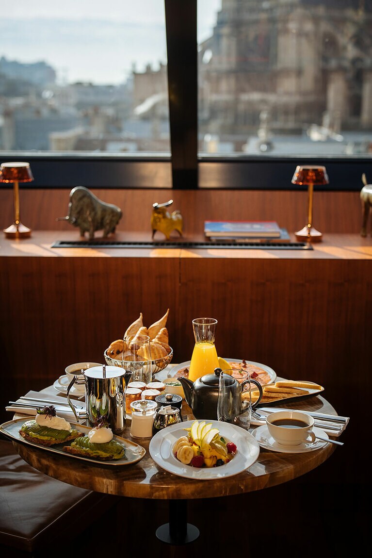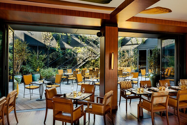 1階ロビー奥に広がる「マダム レーヴ カフェ」。 19世紀に建てられた旧郵便局の柱を生かした内装に。 アール・ヌーヴォーのインテリアが重厚感あふれる建造物に調和する。 パリの中心にありながら、ゆったりとした時間が流れるテラス席。 シーフードから肉料理まで、多彩なメニューが揃う。 卵料理やパスタなど、大満足のブッフェブランチは75ユーロ。 ミクソロジストが新感覚のカクテルを提供する。