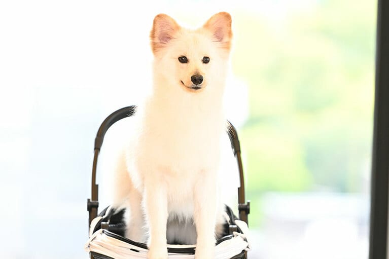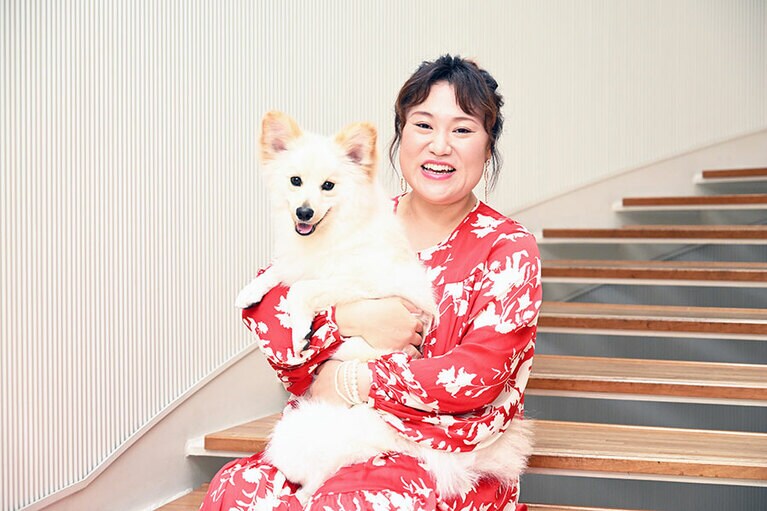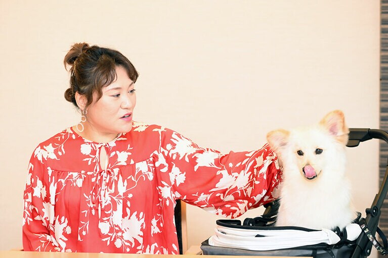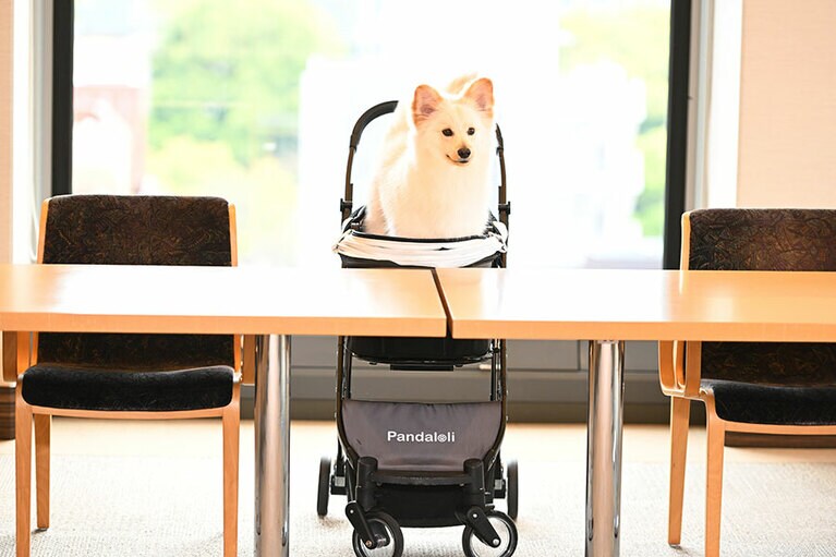 バービーさんと愛犬の神(かみ)くん。 取材中はバギーにお座り。 お利口です。 じっとバービーさんを見つめます。 酔っ払って床で寝たら仕方なく寄り添ってくれた。 少しずつ飽きて外に出たくなってきた神くん。 部屋を走り回ってはバギーに戻され、走っては戻され……な神くん。 バギーに入らなくなってしまったので、バービーさんの膝の上に移動。まだ動き足りなそうです。 初めての北海道。初めてのノーリード。表紙デビュー。PHP研究所「『わたしはわたし』で生きていく」5月20日(土)発売。