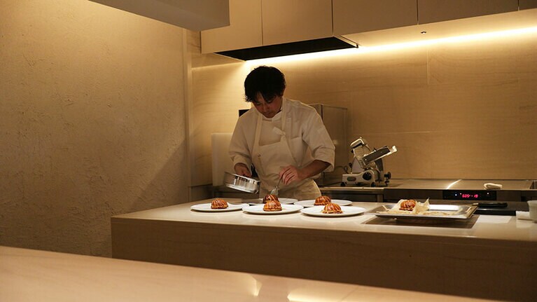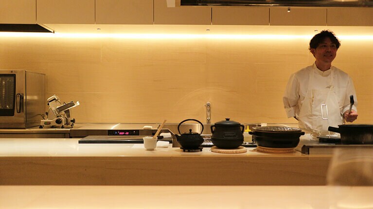 前橋まで出かけたくなる理由になる。 シンプルな中に繊細さと力強さが。 石橋和樹シェフ。 「HALキャビア/対馬アオリイカ/コブミカン」。 「フォアグラ/焼きまんじゅう/高知県産ボカ」。 フォアグラとソーテルヌの組合せ! 「上州地鶏/金華ハム/トルテッリーニ」。 目の前で注がれ、ふたをして閉じ込める。 「銀の鴨/十石味噌/黒七味」。 ワインペアリングは33,000円。充実の内容だ。 内藤大治朗さん。 内藤大治朗さん。