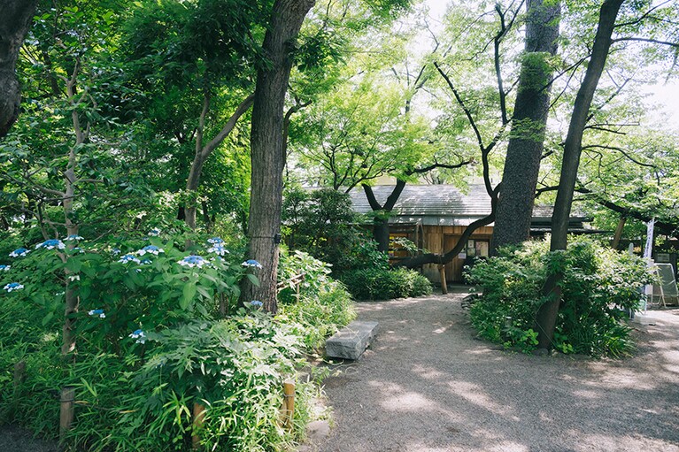 「牧野博士が名づけたといわれるセンダイヤザクラは、『ねりまの名木』に登録されています。開花は3月下旬頃からですが、緑の葉も清々しいですよ」と大木を見上げる佐藤さん。 「朝ドラの影響で注目度が上がっており、お昼くらいだと混み合いますので、開園に合わせて訪れるとゆっくりまわれますよ」と佐藤さん。 正門をくぐってすぐのところで出迎えてくれる雄大な樹木は、ダイオウマツ。 スエコザサに囲まれている牧野博士の胸像。 牧野博士が植栽したとされる樹木には、樹名板にぐるぐる巻きの「の」(「まきの」を意味)のマークが添えられています。 「樹名板には二次元コードがありますのでスマホで読み込んでみましょう。その植物の詳しい解説や情報を見ることができますよ」 入り口でもらえるパンフレットを手にヒメアジサイを探す佐藤さん。 記念館へと続く小道にはアジサイ“なでしこ”が咲いていました。 手まり形の澄んだ青色の花をつけたヒメアジサイ。鎌倉の明月院に植栽されていることでも知られています。 牧野博士が高知県の知人から苗をもらって植え、昭和50年に現在の位置に移植されたセンダイヤザクラ。 高さ約13メートル。花柄にヘラ状の苞があるためヘラノキと命名。秋にはヘラ状の総苞葉が風を受け、飛ぶ様子が見られます。 開花は7月頃。枝先に淡い黄色の花を10個ほどつけ、下向きに開きます。 パネルには見頃の植物の写真と名前、園内のどのエリアにあるのかがわかるように表示されています。 白色で芳香の強いクチナシの花。枝先に1つずつつき、花冠は6裂して開きますが、ときに5裂または7裂することも。 黄金色でシベが長く、華美な雰囲気のビヨウヤナギ。 ドクダミは、茎先の十字形の白い苞の中心に花を咲かせていました。 秋に鮮やかな紫色の実をつけるムラサキシキブの花は、淡い紫色。 ムラサキシキブをじっくり見ると、淡い色彩が美しく、花の形もさまざま。 山野でよく見られるアカメガシワ。薄黄色の小さな花が穂状に集まって咲きます。 白い花をGoogleレンズにかざしてみると、類似する画像結果が表示され、ナンテンを探し出せました。 冬に赤くて丸い実をつけるナンテンですが、初夏に密集した白い小花を咲かせます。 見本園コーナーでアカンサスを下から観察する佐藤さん。 下から見上げたアカンサス。シベの様子がよくわかります。 アカンサスはギリシア語で「トゲ」の意味。和名はハアザミで家紋にも用いられたとか。 みっしりと多彩な植物が並ぶ見本園コーナーの一角。 まっすぐ伸びた茎に涼しげな薄紫色の花をいくつもつけるギボウシ。 上下に開く2枚の唇形の花びらが特徴的なハグロソウ。 見上げると眩しい緑がいっぱい。多種多様な樹木に囲まれての「緑浴」は涼を感じられ、気分も穏やかに。 赤くてかわいらしい実が、なんと葉についているナギイカダ。 ビワが実っていたのは正門近くで、園外からも観賞できます。 エゴノキは、「森のシャンデリア」ともいわれる鈴のような白い花が咲き終わると、少し緑がかった白い実をつけます。 エゴノキの枝先にはバナナのような白い房も。じつはアブラムシが作った虫こぶで、形が猫の足先に似ていることからエゴノネコアシと呼ばれているそう。 マユミの結実の様子。秋には熟して薄紅色になるそう。 新芽が赤く、秋には紅葉するアカシデ。雌花が動物の尾のように垂れ下がっています。 「アカシデの果穂は、ホップの果穂のようにも見えるユニークな形ですよ」 牧野博士が命名したニシキマンサクの実を指差す佐藤さん。 写真左:4月から5月上旬に咲くシロヤマブキ 写真右:ヤマブキの花びらが5枚なのに対し、こちらは4枚。訪れたときには花は終わっていて、4つずつ生る実をつけていました。 3月下旬から4月頃、土に半ば埋もれるように暗紫色の花を咲かせるタマノカンアオイは、濃い緑色の葉をツヤツヤさせていました。 写真左から時計回りにウバユリ、オオキツネノカミソリ、シロバナマンジュシャゲ、ユキワリイチゲ、キンモクセイ。 小道の先に見える記念館。こちらも無料で公開されています。 記念館には、精巧に描かれた植物図やアート作品のような美しい標本が展示されています。 常設展示室には、博士が愛用した植物採集道具がずらり。野山を駆け巡っている博士の姿が目に浮かぶようです。