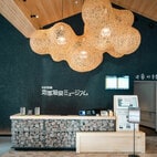 長いカウンターからは絶品メニューの数々が提供される。 カフェに面した中庭では、この場所にもともとあった金龍地獄の源泉から湯けむりがあがる。 無添加オリジナル 地獄温泉ヒナタドッグ 700円。 スペシャルティコーヒーの豆も販売されています。 大分産いちご&ジャージー牛乳100%ミックスソフトクリーム 550円、オリジナルブレンド 500円。 50 CAFEオリジナルの生チョコフィナンシェ「地獄ティグレ」各350円。 鉄輪で温泉三昧を楽しむキャラクター「こおにちゃん」の手拭いやTシャツなども充実。
