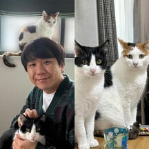 りんたろー。さんと愛犬ブレア。「パパのスマホで漫才を勉強中」 りんたろー。さん。 「パパの肩からイケメンを探す」 ずっと照れ隠しをしながら話すりんたろー。さん。 うちの子ベストショット①「もう眠いのにまだ遊んでとせがむ」 「あぁ、俺ってお父さんなんだ……」 うちの子ベストショット②「遊び疲れて夢の中」 「第一子だけど2人目の子供ができるみたいというか、不思議な感じ」 うちの子ベストショット➂「甘える時はお腹を見せてくる」 りんたろー。さん。