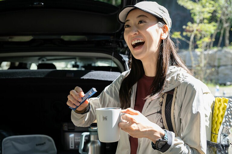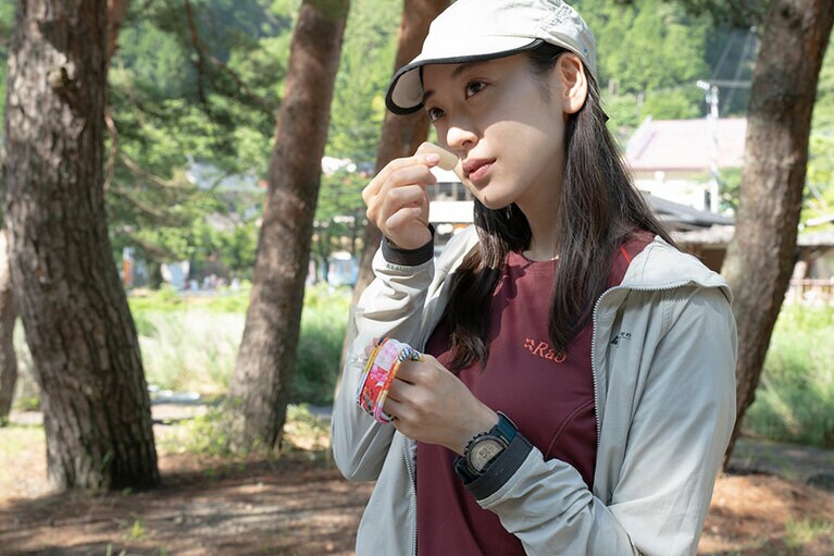 山コスメは自分にも自然にもうれしいものを。 日焼け止めの塗り直しは休憩ごとに。 左から、下山後にサッパリするために備えておきたいF organicsのブライトニングブースターミスト120g 4,400円、同クレンジングオイル150ml 3,740円。日焼け止め&下地も兼ねた同UVプロテクトベース3,080円。気になる汗のニオイは、脇など気になる部分にくるくるっと塗れるロールタイプも便利。made of Organicsのオーガニック ホワイト DE ロールオンEX 1,760円。PERFECT POTIONのアウトドアボディスプレー ハッカ50ml 825円。PARA’KITOの虫除けバンド 3,080円(すべてビープル ウェブストア) 植物由来の製品は、肌にも地球にもやさしい。 ミストタイプの化粧水は汗をかいたあとのリフレッシュにぴったり! リストバンド型の虫除けは荷物にならずに嬉しい! こんな風に大きめのボトルを車に積んでおくと安心です。真空クエンチャー0.414L 4,730円、0.6L 5,750円、真空グロウラー1.9L 11,550円、クーラーボックス16,500円/全てスタンレー(ドウシシャ)、パッキングキューブ S 2,970円、M 3,850円/全てスーリー(ゼット株式会社)、シューズ24,200円/ブルックス(アキレスお客様相談室) 水に溶かすスティックタイプのMR/NUの経口補水液は、山へ常備しやすく、スタイリッシュなパッケージも気分が上がる。 カフェラテカップ9,900円/スタンレー(ドウシシャ) 左からVATENのミトコンドリア活躍飲料100ml/432円。THE PROTEIN BALL CO.のヴィーガンプロテインボール レモンピスタチオ420円。ME/NUのHUMANEED QUICK APPLE経口補水液 250ml/496円(以上、ビープル ウェブストア) 雄大な景色を眺めながらのスナックタイムは開放感抜群です! もちろんウェアもこだわって。ショーツ 22,000円、キャップ 8,800円、ザック 27,500円全て/クレッタルムーセン(スプートニク)、Tシャツ 6,050円/ラブ(ランドアール)、ロングタイツ 13,200円/スキンズ(株式会社グリップインターナショナル)、サングラス 4,950円/グダー(ブルータグ株式会社)、リストウォッチ 46,200円/プロトレック(カシオ計算機お客様相談室)、ソックス 2,310円/フィーチャーズ(フィーチャーズ)、シューズ 20,900円/サロモン(サロモン コールセンター)、ボトル0.45L 5,500円/スタンレー(ドウシシャ) ザックにアイテムを詰め込んで、出かけよう。(左)ザック27,500円/クレッタルムーセン(スプートニク)、(右)ザック18,150円/スーリー(ゼット株式会社) 猪野正哉さん(左)と田中行太さん(右)<猪野>ロングスリーブシャツ 14,850円、ソフトシェルショーツ 10,450円、キャップ 4,290円、トレッキングシューズ 13,970円すべて/コロンビア(コロンビアスポーツウェアジャパン)<田中>ジャケット 49,500円、Tシャツ 35,200円、ショーツ 22,000円、キャップ 13,200円、ザック 46,200円、サコッシュ 8,800円/全てクレッタルムーセン(スプートニク)、シューズ 24,200円/ブルックス(アキレスお客様相談室)。