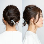 アヴェダ スタイリストに教わる簡単ヘアアレンジ。 簡単なのにパーティー仕様! ゴールドヘアピン・デコレーション。 「ゴールドヘアピン・デコレーション」に使用したヘアピン。 【STEP1】 【STEP2】 【STEP3】 【STEP4】 【完成-1】 【完成-2】 強いホールド力で髪形をキープするスタイリングジェル。髪に自然な潤いも与える。髪の毛が太い人や、コシが強い人のスタイリングに。アヴェダ メン ピュアフォーマンス ファーム ホールド ジェル 150ml 3,740円/アヴェダ・ジャパン 左:アヴェダ ライフスタイル サロン&スパ 南青山 スタイリスト・小南さん。右:CREAアンバサダー 井上 智賀さん。