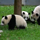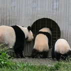 中国に行ったシャンシャン。(2023年10月12日、中国・四川省で筆者撮影) パンダに関わる仕事を上野動物園の担当者が紹介。(筆者撮影。写真のスライドの内容は上野動物園が作成。以下同) 抽選に当たった中学・高校・専門学校・大学生、約60人がセミナーに参加した。参加者による撮影はメモとしてのみ許可され、SNSなどへのアップは禁止。 パンダは竹を選別する。 パンダ団子。 トレーニングでご褒美のパンダ団子が役に立った。