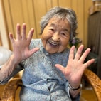 哲代さん家の土間に今日もご近所さんが集まります。 姪の弥生さんに見守られ、歩行練習に励む哲代さん。「100年も頑張ってくれた足じゃからな。ちいとガタがきとります」。 石井哲代さん。 トウモロコシを一粒ずつ口に運ぶ哲代さん。