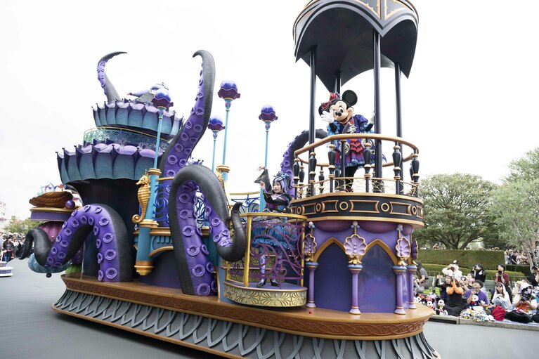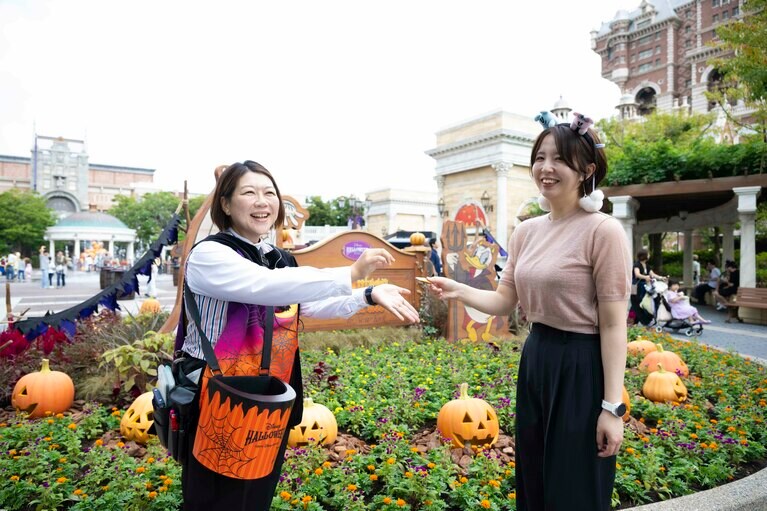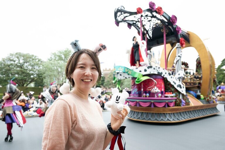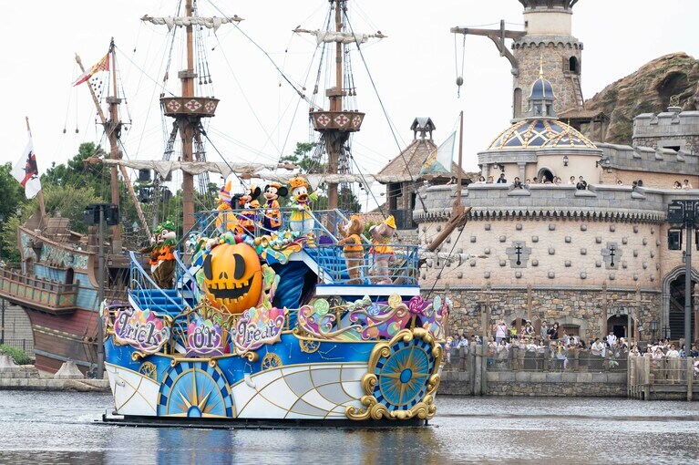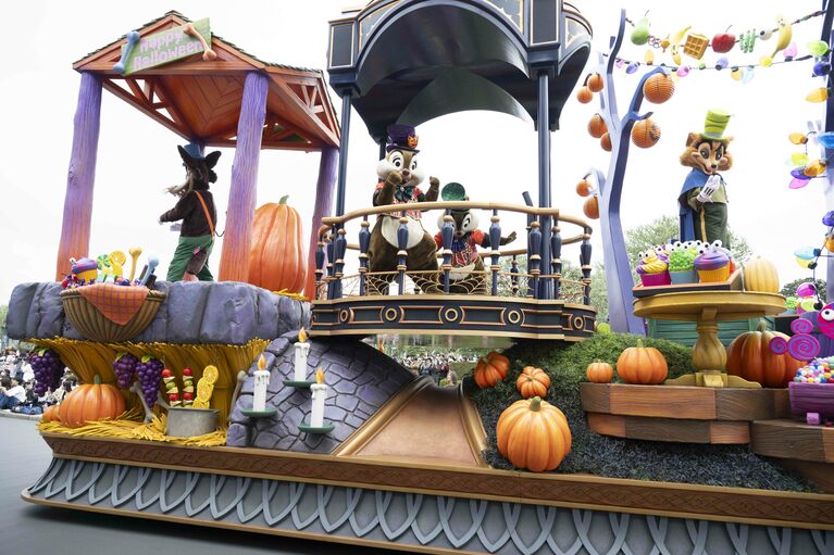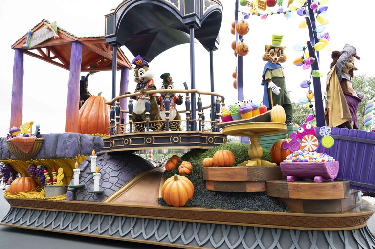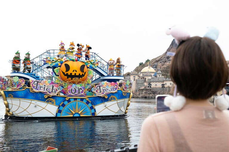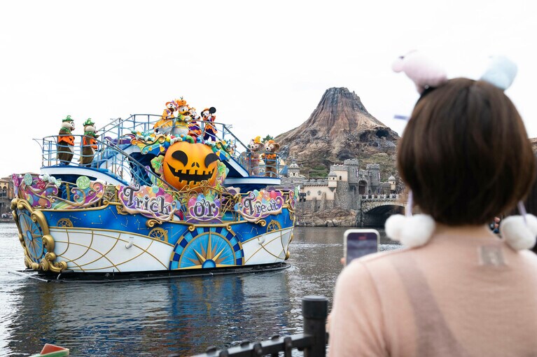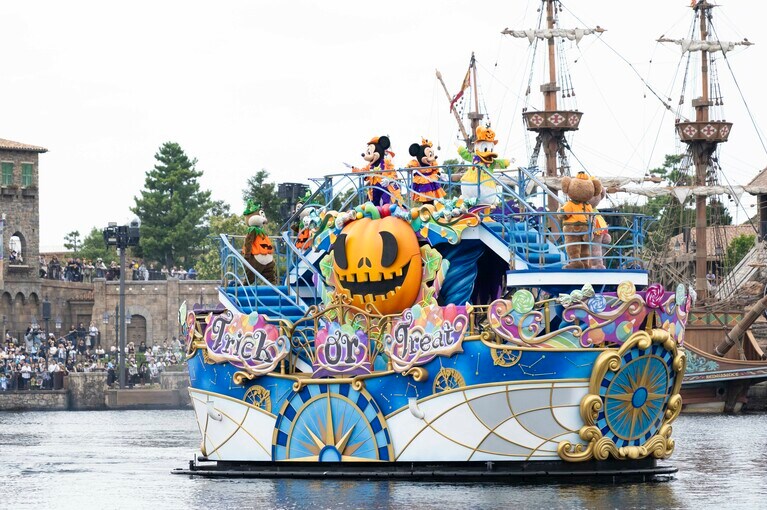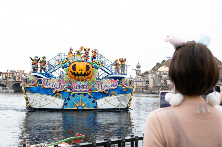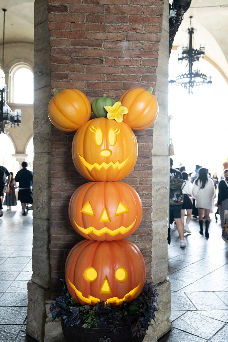 メディテレーニアンハーバーで行われる「ディズニー・ハロウィーン・グリーティング」© Disney ミニー・マウスやドナルドダッグがジャック・オー・ランタンに!そのキュートさに思わず写真を撮りたくなるはず。 タワーオブテラーに向かう途中に見かけたデコレーション。ミッキーとドクロが雰囲気たっぷり。 「ディズニー・ハロウィーン・グリーティング」開催期間:2024年10月1日(火)~11月7日(木)公演場所:メディテレーニアンハーバー、公演時間:約15分(1日2回) グリーティングの間、船はメディテレーニアンハーバーをぐるっと周り、ゲストの前で止まってくれるのが嬉しい。 ダッフィーとシェリーメイが登場するのも、東京ディズニーシーならでは。© Disney 「トリック・オア・トリート・アット・ハロウィーンフェア」実施時間:9:00~21:00 チュロス(メイプルパンプキン)500円/販売店舗:ハドソンリバー・ハーベスト、ドックサイドダイナー、ハイタイド・トリート かぼちゃのニョッキグラタン(ナッツ入り)、メイプルソース付き900円/販売店舗:フードトラック(ブルー) そのほか、ダッフィー&フレンズの秋冬グッズも10月3日(木)より新登場。7人それぞれのデザインのふわもこヘッドウェアやサガラ織りのキーチェーンなど、お土産にぴったりなものばかりなのでチェックしよう。 ライター鈴木希がレポート。 「パレードザ・ヴィランズ・ハロウィーン“IntotheFrenzy”」の公演は、ディズニー・ハロウィーン開催期間中、1日1回。パレードのホストを務める『プリンセスと魔法のキス』のヴィランズ“ドクター・ファシリエ”はこの秋、東京ディズニーリゾートに初登場。© Disney ヴィランズやミッキーたちはもちろん、アクロバティックなパフォーマンスを見せるキャストにも注目を。© Disney 公演開始にあたりダンスを教えてくれるので、いざ始まるとすぐに一緒に盛り上がれるのが嬉しい。© Disney スペシャルドリンク(紫イモ、ミルク、コーヒーゼリー)700円/販売店舗:リフレッシュメントコーナー、ヒューイ・デューイ・ルーイのグッドタイム・カフェ、キャンプ・ウッドチャック・キッチン 右上)スパークリングゼリードリンク(コカ・コーラ&ストロベリー)700円/販売店舗:キャプテンフックス・ギャレー、ザ・ガゼーボ、パン・ギャラクティック・ピザ・ポート、トルバドールタバン 下)スペシャルまん(テリヤキチキン&ベーコンポテト)750円/販売店舗:ボイラールーム・バイツ、トゥーントーン・トリート 左から手持ちバルーン900円、カチューシャ2200円 くっつきぬいぐるみ(2000円)は、おばけミッキーの手がクリップになっていて服に装着できる。肩のせて一緒にパークを回ってみては。 エントランスにはミッキーマウスのシルエットをイメージしたカボチャのフォトスポットがあり、入園してすぐハロウィーンらしさを感じられる。 ワールドバザールのメインストリートにあるのは、ヴィランズがテーマの今年らしいデコレーション。茨やドレープがあしらわれた装飾が出迎える。 期間限定のスペシャルプログラム「ホーンテッドマンション“ホリデーナイトメアー”」が2025年1月13日(月)まで実施中。『ティム・バートンのナイトメアー・ビフォア・クリスマス』をモチーフにしており、カボチャのツリーもぜひ撮りたいスポット。