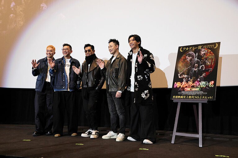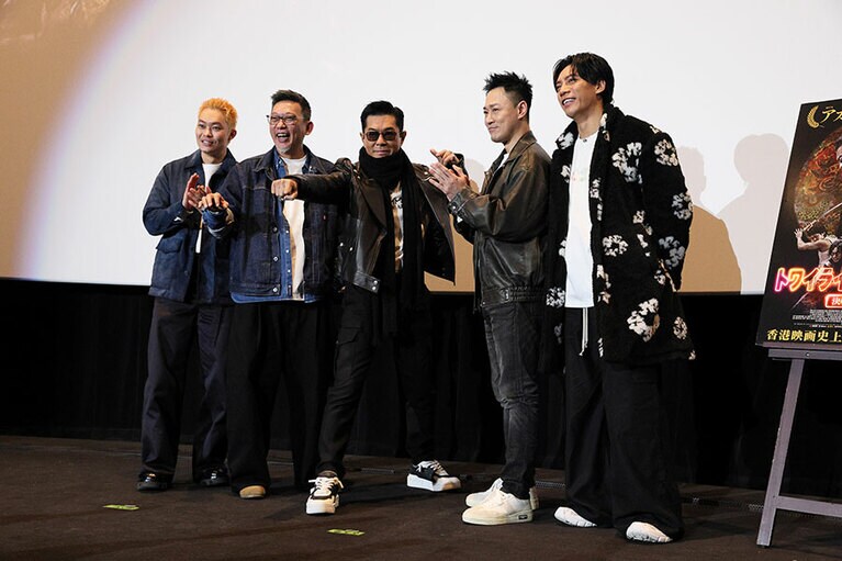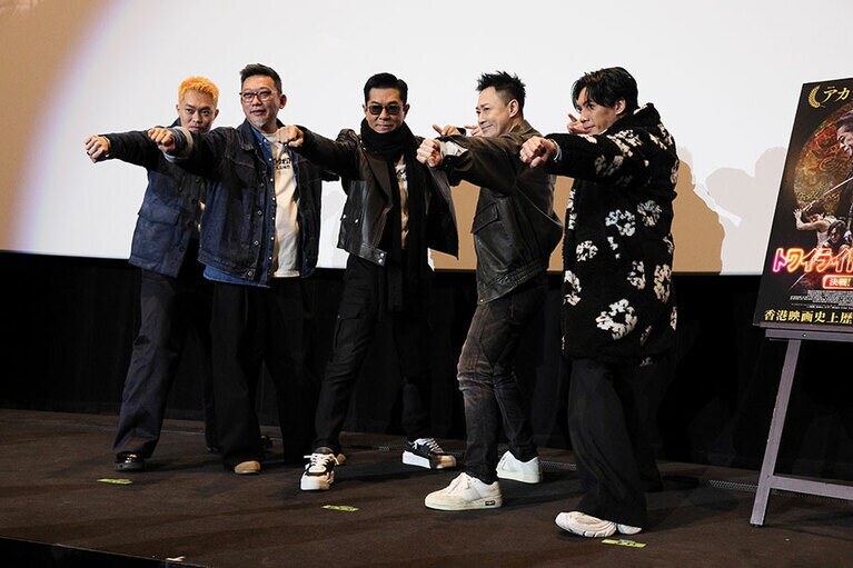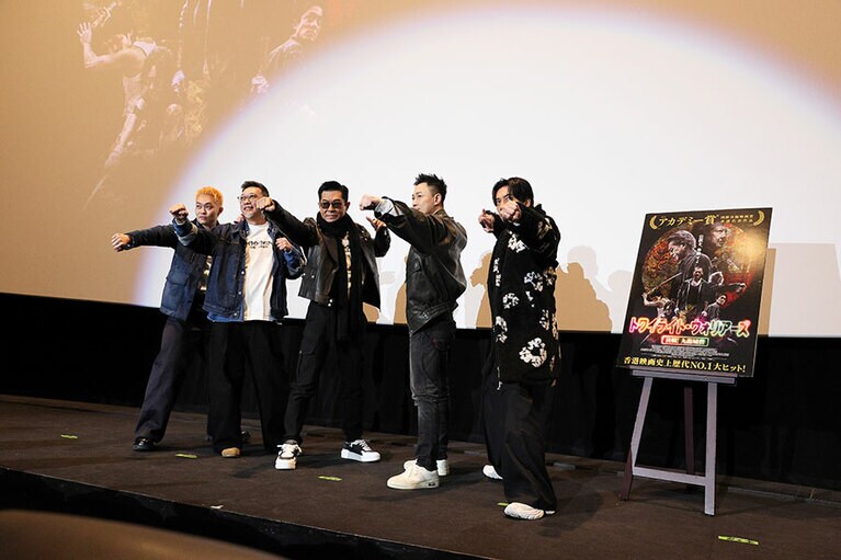 大ヒット御礼舞台挨拶のため急遽来日した、トニー・ウー(胡子彤)、監督のソイ・チェン(鄭保瑞)、龍兄貴のルイス・クー(漢字表記:古天樂。以下同)、チャン役のレイモンド・ラム(林峯)、ジャーマン・チョン(張文傑) ルイス・クー レイモンド・ラム 舞台挨拶に来ていたファン。信一と天九の衣装もお見事(筆者撮影) トニー・ウー ジャーマン・チョン 香港AIRSIDE での展覧会。床屋のセットは必見(筆者撮影) ©2024 Media Asia Film Production Limited Entertaining Power Co. Limited One Cool Film Production Limited Lian Ray Pictures Co., Ltd All Rights Reserved.
