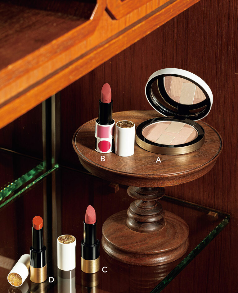 A:LV ルージュ 896 23,100円 B:LV ルージュ 201 23,100円 C:LV ルージュ 854 23,100円 D:LV オンブル 896 36,300円/ルイ・ヴィトン A:エルメス プラン エア Hトリオ プードル ミネラル ナクレ 01 13,750円 B:ルージュ エルメス ルージュ ア レーヴル マット レジェ 24 10,010円 C:ルージュ エルメス ルージュ ア レーヴル マット 48 9,240円 D:ルージュ エルメス ルージュ ブリヤン シルキー 15 9,240円/エルメスジャポン プラダ メッシュ クッション 全4色 11,330円/プラダ ビューティ