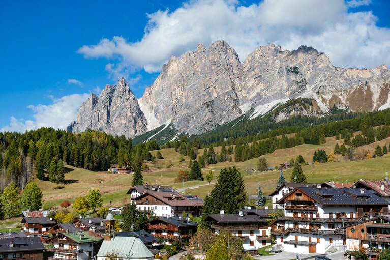 鋭くそびえ立つドロミティの山々に抱かれたコルティナ・ダンペッツォの街。 コルティナ近くのサンタ・カテリーナ湖。山や街を映し出す静謐な湖もこの地の魅力。 壁一面にフレスコ画が描かれた建物。街並みも可愛らしく、散策も楽しい。 街のどこからでも山が見える。メインストリートにはブランドのブティックが軒を連ねる。 おしゃれしてメインストリートを闊歩する人も。 イン片手に語らう。ともに過ごす。“共生”は山での暮らしに大切なキーワード。