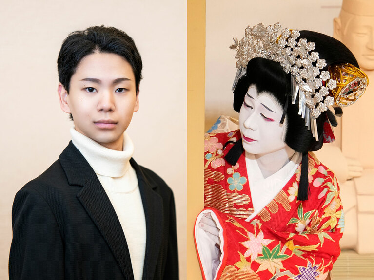 尾上左近さん。(右:『菅原伝授手習鑑』苅屋姫 ©松竹) 『男女道成寺』白拍子桜子実は狂言師左近 ©松竹 『男女道成寺』白拍子桜子実は狂言師左近 ©松竹 『梶原平三誉石切』梢 ©松竹 『義経千本桜』お里 ©松竹 超歌舞伎Powered by IOWN『世界花結詞』初音姫実は白鷺の精霊 ⓒ松竹/超歌舞伎 Powered by IOWN『世界花結詞』 『義経千本桜』主馬小金吾 ©松竹 『菅原伝授手習鑑』苅屋姫 ©松竹