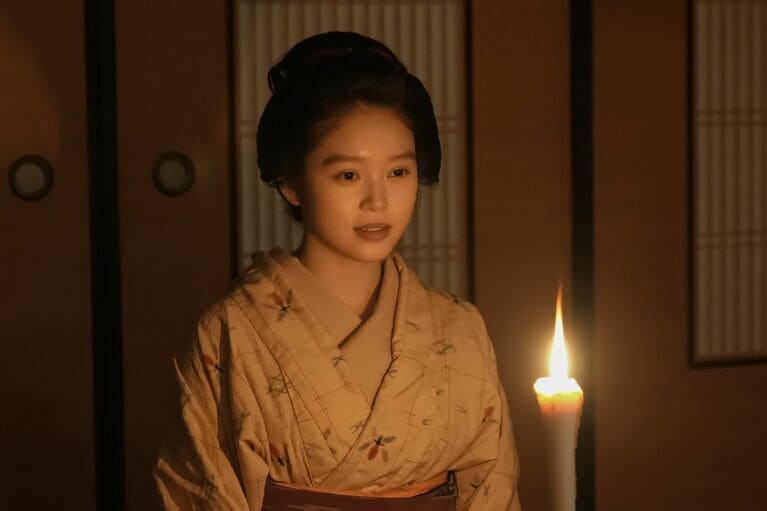 怪談好きのトキは、生き生きと語りだす ©NHK 第12週、『鳥取の布団』を語るトキ ©NHK 英語の「Beer」が伝わらず、ヘブンはイライラ ©NHK 怪談を通じて距離が縮まるヘブンとトキ ©NHK