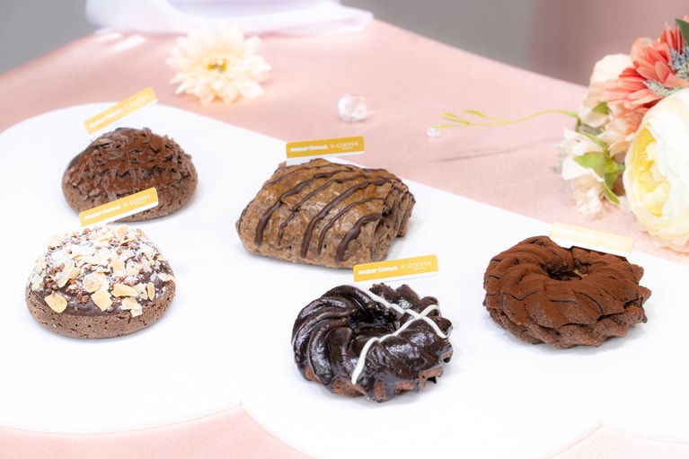 株式会社ダスキンが運営するミスタードーナツがゴディバと共同開発したアニバーサリーコレクション。 ゴディバと共同開発した『Mister Donut×GODIVA』シリーズ。1月9日(金)から期間限定で発売されている。2月下旬まで続売予定(各ショップ、なくなり次第終了)。 筆者イチオシの「生ショコラフレンチ キャラメルプラリネ」。テイクアウト291円(イートイン297円)。 ドーナツにサンドされたプラリネホイップが甘すぎなくておいしい! ネットオーダーのみの発売の、トリオハート ショコラ&プラリネ。 ドーナツ生地の上にも味の異なるハートが山盛り! どこから食べてよいか迷います。669円(テイクアウトのみ)。 残念ながら、大人気のショコラロールケーキは早々に完売。 351円とは思えないフォンダンクッキーシュー。 クッキーガトーショコラ、チョコホイップ、生チョコクリームを重ねたショコラケーキは1個で大満足の食べごたえ。486円。