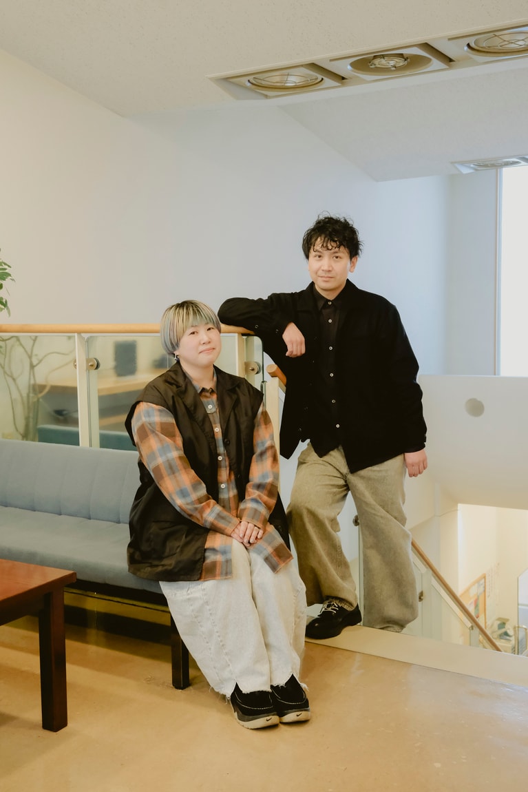 劇団「範宙遊泳」代表の山本卓卓(右)とプロデューサーの坂本もも(左)。坂本は合同会社範宙遊泳の代表も務める。 坂本と山本。 坂本と山本。 山本と坂本。 坂本と山本。 『われらが血がしょうたい』フライヤー