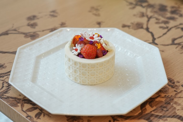 世界観に包まれたティータイムを。 カフェ入り口のアート。 花の新たな表情を見つけて。 壁面の花々。 こちらも東氏の作品。 天井のアート。 カウンターには茶道具が。 カフェの奥にある庭園。 テラス席も完備。 「ル パン クジュ マン」5,000円。 「ル トレフル」5,000円。 「ル カナージュ シュクレ」5,000円。 アート作品。 アート作品。 テラス。 テラス。 内観。 内観。 内観。 内観。