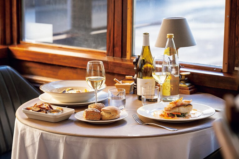 “ブイヤーベース、ラ・フレガート風”25ユーロ。魚の骨と香味野菜を煮てスープを作り、ルイユを少し加え、ミキサーにかけて濾す。スープで魚を煮て完成。この日はタラ、スズキ、アンコウ、カサゴ入り。 右は“エビとタラのショウガ風味、オマール海老のビスク”25ユーロ。 “スフレ・グラン・マルニエ” 9ユーロ。熱々のスフレはふわりと軽く、リキュールの香りが余韻を与える。 オーナーシェフのアントニオ・トレス氏。長年、パリ7区の老舗店「ル・ヴォルテール」でシェフを務めた。パティシエの国家資格も持つ。
