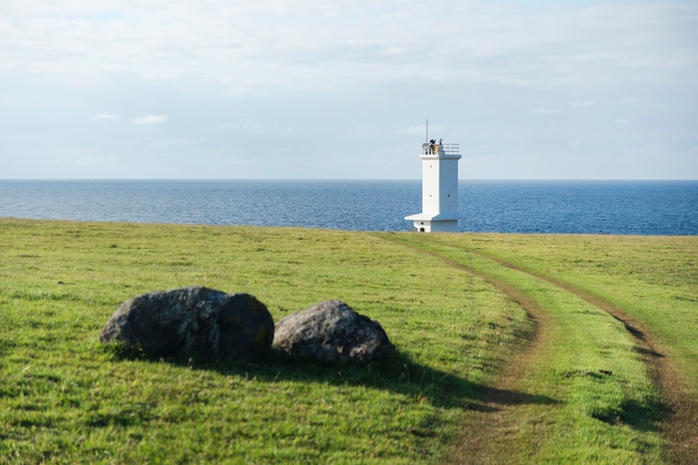 斑島灯台(長崎県五島列島)。⼩値賀⽕⼭島群である斑島の北西部、牛の放牧場となっている岬「ト子リノ鼻」に立つ。黒い玄武岩に白い外観が映える、高さ10mほどの灯台。 東山彰良さん。 町営船で野崎島に向かう。 ほぼ無人島の野崎島を散策。鹿が多い。 野崎島の鹿たち。 野崎島の鹿。 旧野首教会は2025年11月に改修が終わった。 野崎島自然学塾村へ。 港を散策。 港のそばの鳥居。 牛が放牧されている牧草地。 斑島灯台(長崎県五島列島)。 灯台の内部へ入るための扉。 白いタイル張りの外壁。 斑島灯台。 斑島灯台。 古民家レストランへ。 小値賀島で獲れた値賀咲。 「一二三(ひふみ)」。 撮影:橋本篤。 撮影:橋本篤。 撮影:橋本篤。 小値賀島で獲れた値賀咲。 大碆鼻灯台(長崎県生月島)。土台部分は探照灯の格納庫だった歴史もあるが、現在は海と灯台プロジェクトのイベントも行われている。 大碆鼻灯台が建つ生月島(いきつきしま)の北端部。 断崖に建つ大碆鼻灯台。生月島の断崖に立ち玄界灘をのぞむ。 大碆鼻灯台からの景色。 大碆鼻灯台。 生月町博物館「島の館」。 鯨を捕る場面を再現したジオラマ。 かくれキリシタン関連の展示室へ。 再現された、かくれキリシタンが暮らしていた家。 ステンドグラスが印象的な生月島の教会。 大碆鼻灯台(長崎県生月島)。