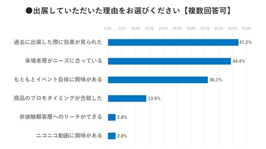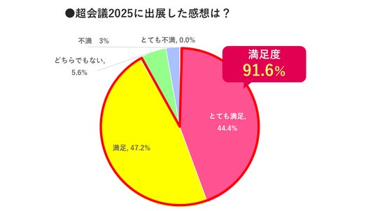 「ニコニコ超会議」への出展は、参加企業・団体より毎年高い評価を受けています。昨年は45社・8校・4自治体が出展し、そのうちの約70%が前年からの継続出展となったほか、イベント終了後の満足度アンケートは91%に達しています。