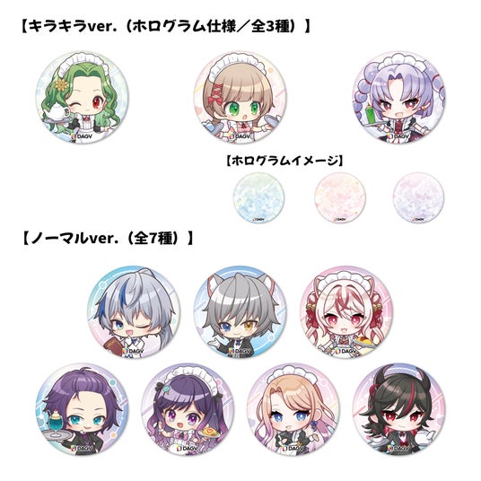DAGV人気ライバーの缶バッジに加え、特別仕様のキラキラ缶バッジも登場します。