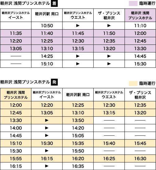 ・軽井沢 浅間プリンスホテルと軽井沢駅南口、軽井沢プリンスホテルなどを周回するシャトルバスを運行いたします。