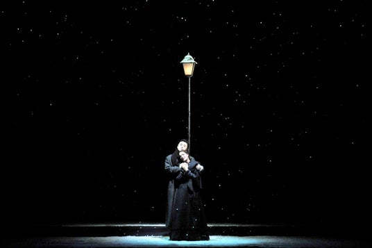 「冷たい手を」「私の名はミミ」の名アリアによって綴られる第1幕のロドルフォとミミの出会いのシーンは、数あるオペラのラブシーンの中でも最も美しい、決定的名場面。華やかなパリ、カルチェ・ラタンの賑わいを描いた第2幕、雪の降りしきる中、別れを決意した恋人たちの美しくも悲しい四重唱、そして涙を禁じえないラストシーンと、見どころは枚挙にいとまがありません。粟國淳の繊細な演出は、丁寧な心理描写で若者たちの夢と挫折の世界を対比し、感動を誘います。パリの街を俯瞰するような豪華な舞台も見どころ。