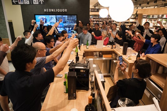 国内及び世界各国8会場を繋ぎ「日本酒」で一斉乾杯の瞬間