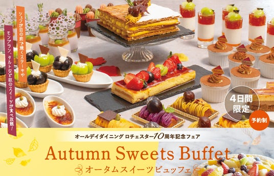 12階 オールデイダイニング ロチェスターのオープン10周年を記念して4日間限定にて開催いたします。シェフが目の前で焼くステーキやモンブラン、タルトなど秋のスイーツをお楽しみください。