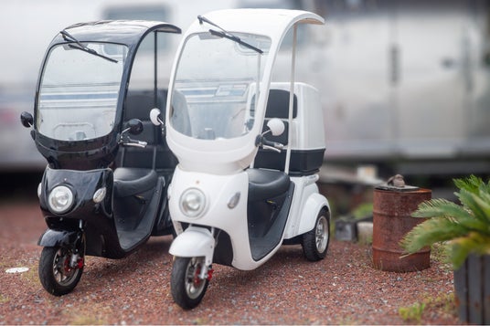 屋根付き三輪電動スクーター。雨天時でも快適に走行可能で、配達等の業務にも最適。