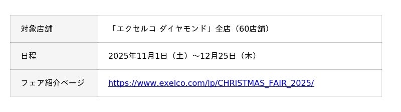 2025年11月1日(土)~12月25日(木)エクセルコ ダイヤモンド 国内全店舗にて