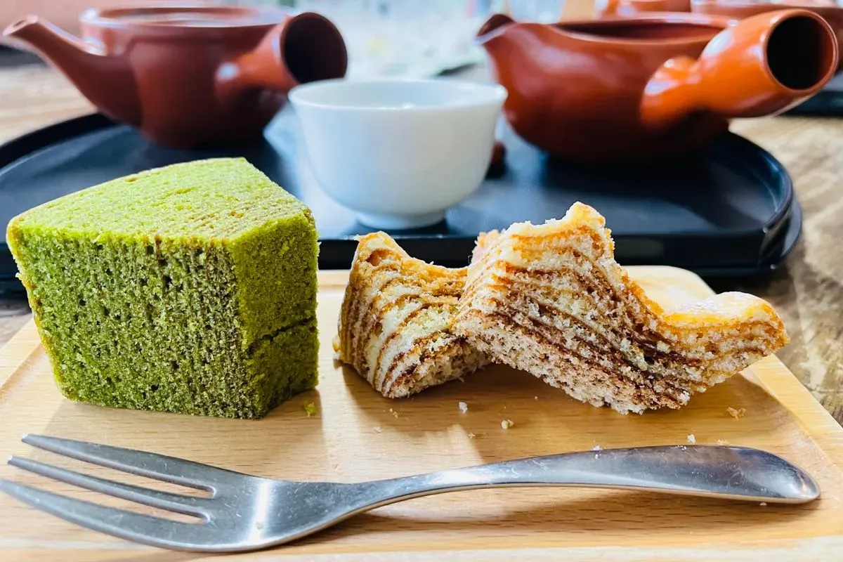 京都府和束町の老舗茶屋「山甚」が営むカフェ。和束茶100%・自家製にこだわったメニューと、自分で淹れる和束茶の穏やかな体験ができます。中でも、有機抹茶を使用した「抹茶バームクーヘン」は、店内の工房で丁寧に焼き上げた現地限定の逸品。サクッと、もっちりの食感と本物だけが持つ豊かな香りと深い味わいを楽しめます。
