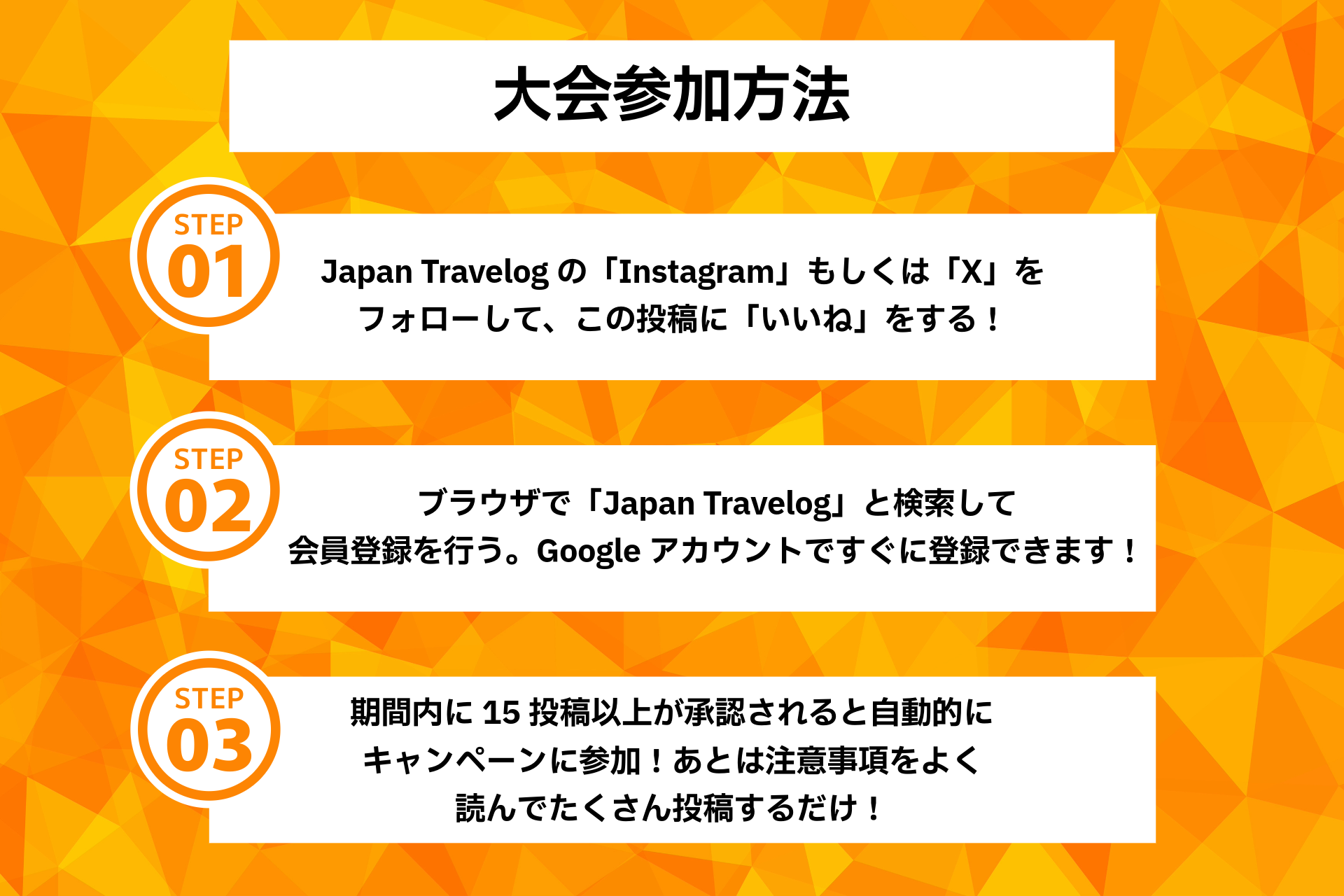 - - 「Japan Travelog」のInstagram をフォロー & Instagram上の大会情報にいいね