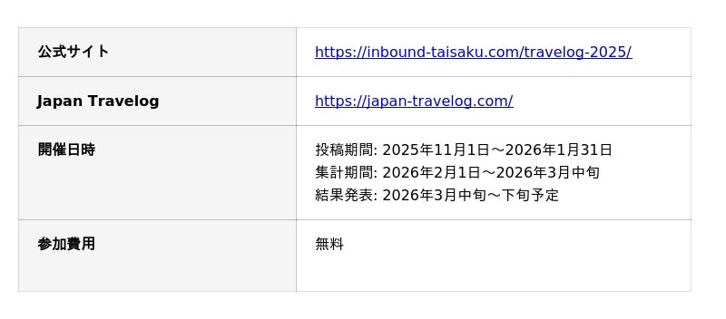 Japan Travelog にて「推しスポット投稿大会」 - トラベリエ主催、2025年11月1日より開催!