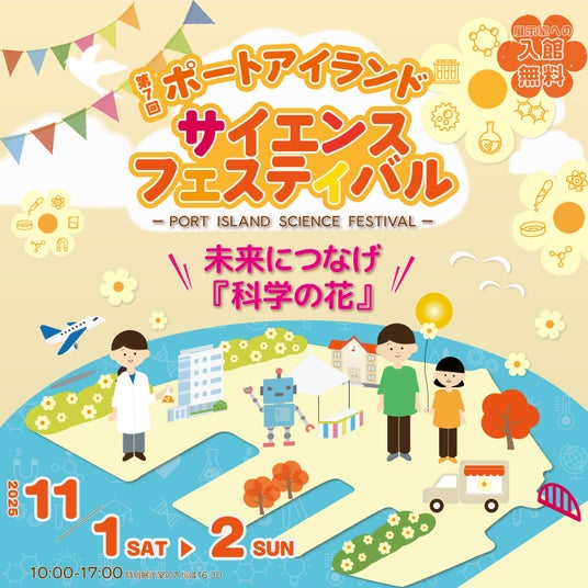 神戸・ポートアイランドには、最先端科学技術の研究を推進する研究機関、民間企業、大学等の高等教育機関が集まっています。「第7回ポートアイランドサイエンスフェスティバル」は各団体が展示やワークショップを出展すると同時に、科学や SDGs の取り組みを広く発信するイベントです。