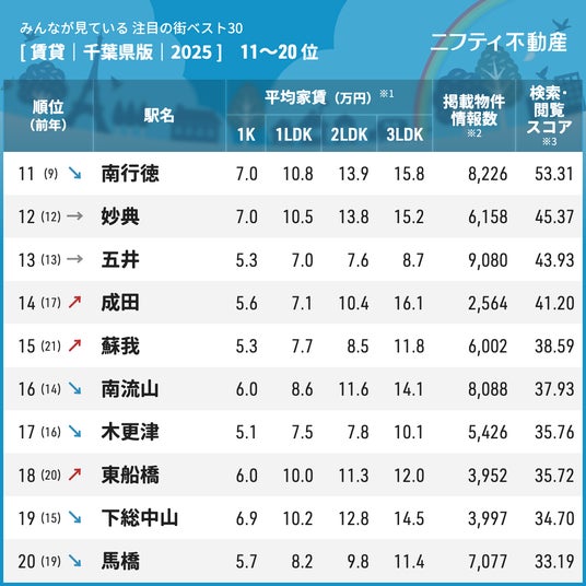 注目の街ランキングベスト30 千葉県版2025 11~20位