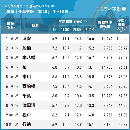 浦安が1位に返り咲き!船橋・本八幡が続く。交通利便性と住環境の両立が支持を集める傾向