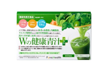 「Wの健康青汁プラス」は、3つの機能性関与成分で体重・体脂肪・高めの血圧・高めの空腹時血糖値を丸ごとサポートする機能性表示食品です。エラグ酸・GABAに加え、新たにバナバ葉由来コロソリン酸を配合。体重※2・体脂肪※2・高めの血圧のケアはそのままに、高めの空腹時血糖値までケアできるよう進化しました。また、健康維持に不可欠な2種のビタミン1日分※3を新配合し、栄養価のバランスをアップ。さらに飲みやすさにもこだわり、小松菜・ほうれん草を追加。自然な甘みと優しい野菜の風味で、スッキリコクのある味わいを楽しんでいただけます。健康診断の結果が気になる方、野菜不足を対策したい方、お腹周りが気になる方におすすめの商品です。