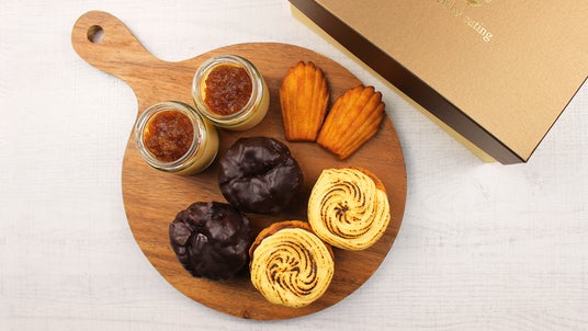 お歳暮ギフトでしか味わえない「低糖質プリン~はちみつとほうじ茶ジュレ~」や「米粉のマドレーヌ」に加え、冬季限定スイーツの「夢シルクのスイートポテトシュー」と「エクレア」がセットになって登場!