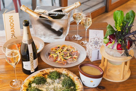 鎌倉駅から徒歩5分、江ノ電が真横を走る特別なロケーションに佇む一軒家レストラン。緑に包まれた開放的なテラス席と落ち着いた店内で、全国の契約農家さんや地元・湘南から届く旬の食材を使った料理をご堪能いただけます。星やギフトボックスをモチーフにデコレーションした煌びやかな空間で、「シャンドン ブリュット」をお楽しみ頂きながら、旬の野菜をふんだんに使った彩り豊かなバーニャカウダや、店内のピザ窯で香ばしく焼き上げるしらすと大葉、バジルジェノベーゼの本格ピザ、鮮魚と根菜のカルパッチョ、トロフィエアラビアータなどホリデーシーズンの趣を添えたメニューをご堪能いただけます。昼は柔らかな陽光につつまれ、夜はイルミネーションの輝きとともに、ホリデーシーズンを彩るAWkitchen GARDEN 鎌倉で、これからピークを迎える年末年始の楽しいギャザリングに、シャンドンと共にきらめきに満ちたひとときを過ごしてみては。