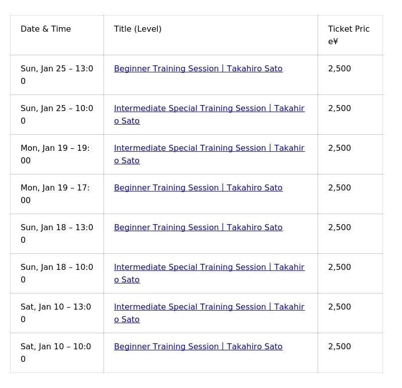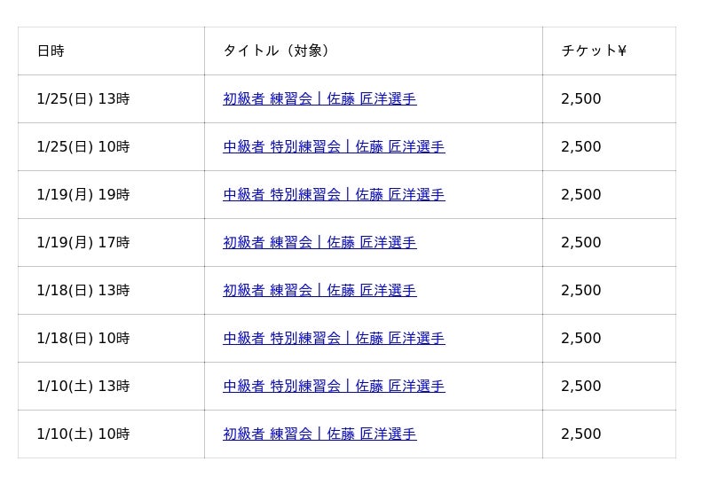【リリース概要|佐藤 匠洋 選手による 初級・中級 練習会】