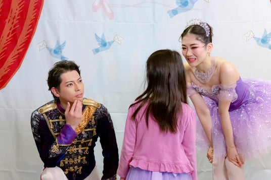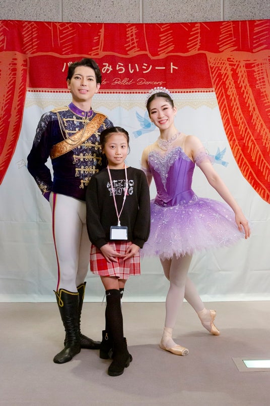 公演終了後、「バレエみらいシート」専用スペースに、お二人が金平糖の精とくるみ割りの王子の衣装でご登場。大きな歓声と拍手につつまれました。