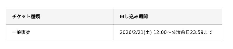 2026年3月1日(日)〈第1部〉15:00開演(14:15開場) 〈第2部〉18:30開演(17:45開場)