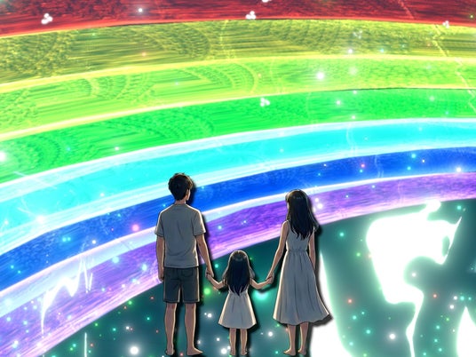 水中の虹が天へ伸び、記憶へ導くシーン(イメージ)