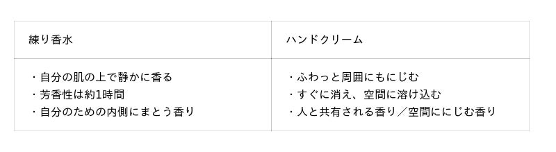 同じ香りでも、「まとう距離」と「役割」が違う。