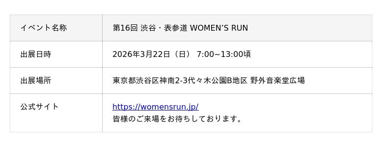 オープンイヤー型イヤホンのパイオニア、Shokz、およびShokz国内代理店であるフォーカルポイント株式会社は2026年3月22日(日)に代々木公園(東京都渋谷区)で開催される「第16回 渋谷・表参道 WOMEN’S RUN」にブース出展します。
